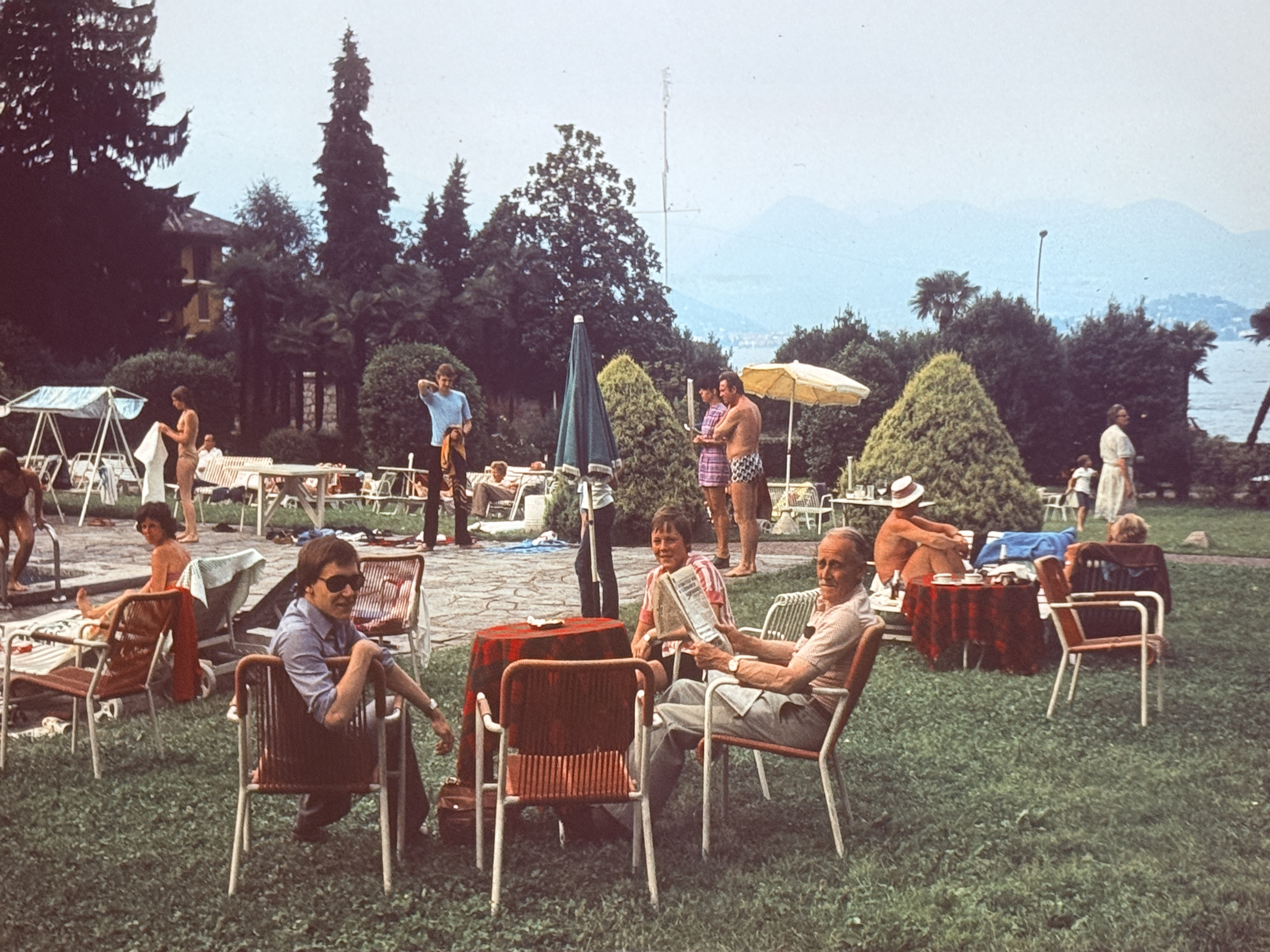 Uit het familiearchief van Martyn duiken vakantiedia’s op: vergezichten bij een meer, een vulkaan, een rotsrichel, … Oorspronkelijk geënsceneerd rond een poserend familielid dat Martyn in zijn interpretaties wegliet.